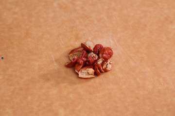 2.把排骨及腌料加入搅拌碗内,腌排骨20分钟,加入红枣,拌匀。