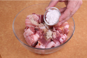 配料:10克姜,磨蓉,10克葱,装饰用,排骨腌料,1汤匙绍兴酒,1汤匙豉油,1茶匙粟粉,1/4茶匙盐,1/4茶匙白胡椒粉。