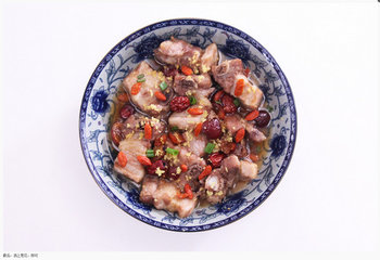 红枣蒸排骨,绝对是一道相当健康的美食。红枣的功效能补脾、养血、安神、驻颜祛斑、健美丰肌。而排骨有很高的营养价值,具有滋阴壮阳、益精补血的功效。蒸排骨这种烹调方式能搭配不同菜品,比如糯米蒸排骨、粉蒸排骨、枸杞蒸排骨。不同的搭配会有不同的口感,按照个人口感的喜好,轻轻松松就能烹调出自己热爱的美食。