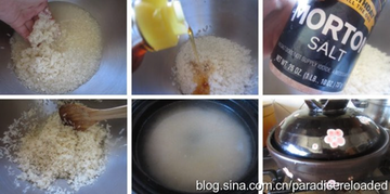 1. 大米淘洗干净,加少许盐和香油拌匀,静置半小时左右。这样熬出的粥米粒酥滑绵软,品相鲜亮。如果煮粥的时间紧迫,可以用碎米或把米打碎一点煮粥,大大节约时间。