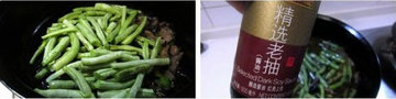 3、炒香出味后放豆角翻炒;加老抽上色