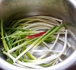 主料:带卵柳叶鱼600g、葱1把、辣椒1根