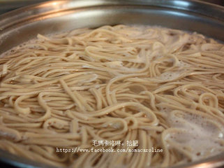 4、煮一锅水下荞麦面,另外准备一锅冷开水放入冰块。等到面煮熟之后捞出沥掉水份,马上放入冰水里,面冷了即可取出