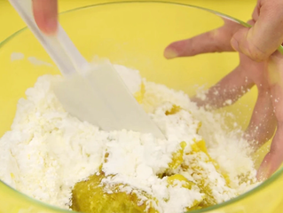 2 、加入糖粉、奶油、低筋面粉、太白粉、盐,拌成团。