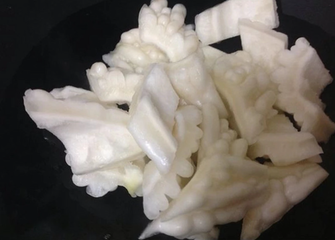 1、苦瓜切块表皮煎赤赤。