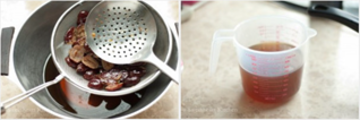 3、用网筛滤起红枣略压,滤出 600毫升红枣水。