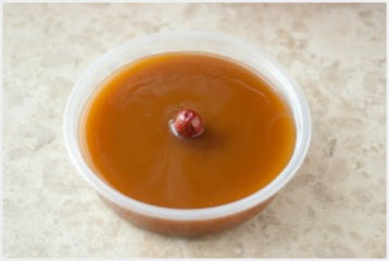 4、红枣水加入蔗糖,小火煮融,放至和暖备用。