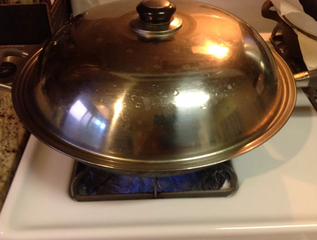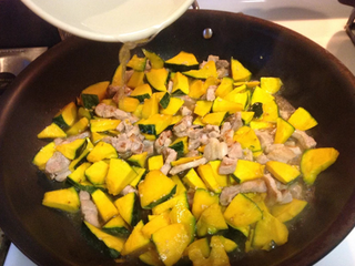 13 、将锅盖盖起 闷煮约5分钟,让南瓜煮熟透。