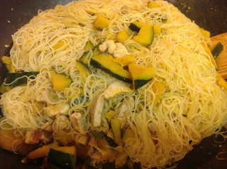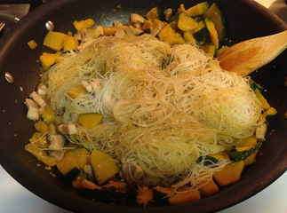 南瓜炒米粉,炎热的夏季来碗色彩诱人,口感香甜的南瓜炒米粉。及解难耐的酷暑又调养身心,健康美味。南瓜还起到解毒、保护胃粘膜、帮助消化、防治糖尿病、降低血糖、消除致癌物质、促进生长发育的功效!好吃美味大家快来试试吧!