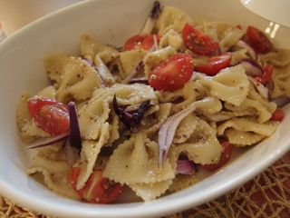 主料:蝴蝶面200g,小番茄随意,紫洋葱半个,法式香草风味料粉一些