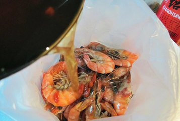 4 、生虾去角须先用葱姜烫熟放凉。放凉的药酒倒进凉虾里翻搅拌匀等待入味。