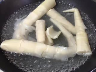 1、先把桂竹笋用滚水烫过后捞起。