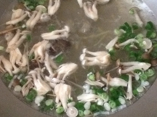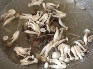 4 、先放入美白菇及鸿禧菇,再放入蛤蛎。