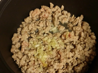 主料:绞肉半斤,杏鲍菇1根,罐头脆瓜1/2罐,蒜末2小匙,白胡椒粉1小匙