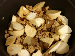 3 、加所有调味料,胡椒粉及杏鲍菇,煮滚后盖上锅盖,转小火继续闷煮约5分钟,就完成。