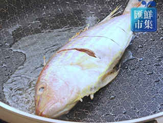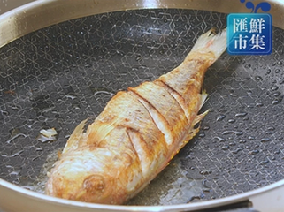 4 、热锅,放少许油,将金线鱼煎至2面金黄,起锅备用。