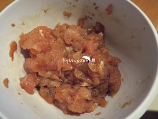 1、鸡胸肉剁碎.少许酱油白胡椒抓腌。