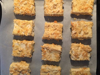 5 、再将豆腐裹上一层 Ritz饼干屑。