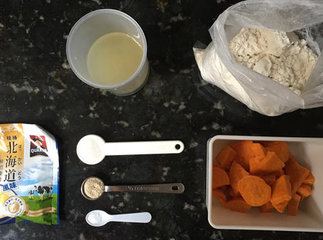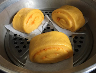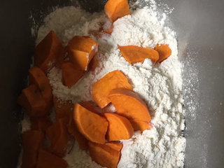 主料:地瓜泥150 g,中筋面粉300 g,快速酵母1/2 茶匙