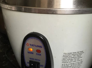 11 、电锅里先倒入两杯水(一杯冷,一杯热),按保温来预热。