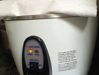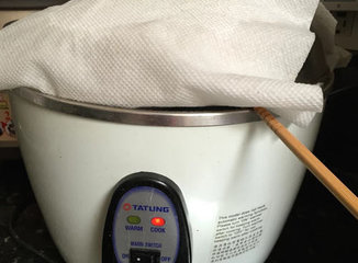 16 、大同电锅的盖子我用两张厨房纸巾包起,开始发酵40分钟。