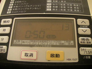 2 、按程式13揉面+发酵程式, 发酵时间设定50分钟。