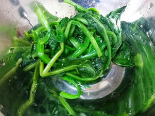 主料:菠菜六株,蒜头一瓣,韩国大酱