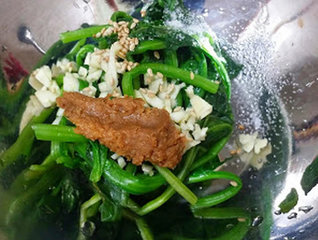 5 、简单的凉拌大酱菠菜된장시금치무침就完成了。