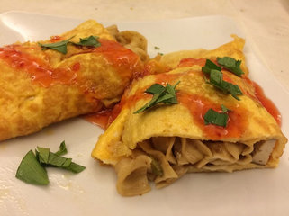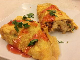 炸酱面蛋卷,将炸酱面卷在蛋皮里,淋上泰式酸辣酱或是蕃茄酱,就是一道好吃的简单快速料理!5分钟出好菜,您可以试试哦!