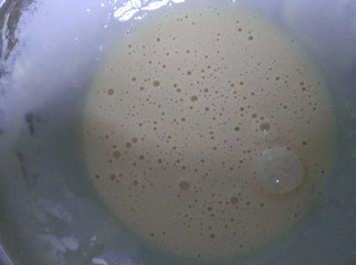 2 、.蛋+低粉慢慢加到稠拌匀成蛋糊(稠度约像优酪乳)。
