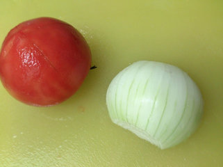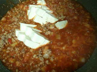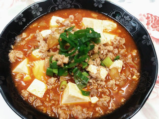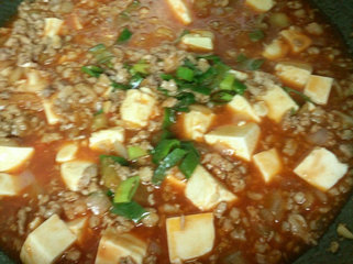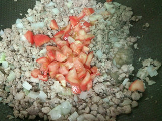 主料:绞肉300克,豆腐两盒或一盒,洋葱半颗,番茄一颗,蒜头4瓣,青葱2支,米酒15克一大匙