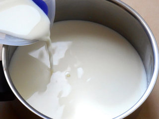 2 、将牛奶+糖小火煮至糖均匀溶解, 待凉。