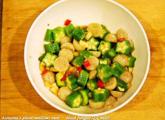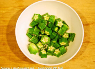 主料:秋葵5根,黑木耳QQ圆(鲜奶)1杯,辣椒1根,蒜头1颗