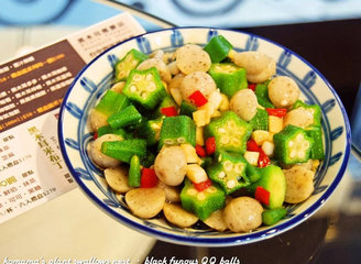 黑木耳凉拌秋葵,秋葵是一种非常有营养的食材,对人体起到的很好的保健作用,秋葵的做法也很多,大多是开水烫、冰镇后淋上酱油膏,洒些柴鱼片来增味,亦或拌些哇沙米来提升香气,而这次则是选用Q弹口感的黑木耳QQ圆来搭配带有黏滑滋味的秋葵,并辅以柠檬汁、辣椒、蒜头与酱油调味而成的凉拌酱汁,整体吃来酸香可口又兼具各种营养,滋味清爽不油腻,食欲不振时来上一盘,开胃又能顾胃!