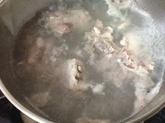 3 、排骨清洗,备锅子,放入排骨,加水至盖过排骨,开大火,煮烫约3分钟,捞起排骨再清洗干净。