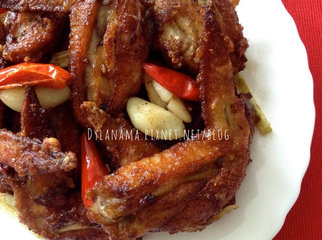 主料:鸡翅十二支,大蒜十粒,辣椒六支,花椒两大匙,葱白两支,姜三片,玉米粉三大匙