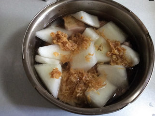 2 、汤锅上排入鸭肉、冬瓜、冬菜再注入水,放入电锅,外锅放2杯水蒸煮。