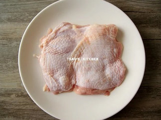 1、鸡腿洗净后,将肉较厚处划几刀防入锅煎时肉缩过多,再加入腌料腌15分钟备用。