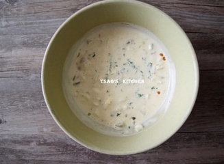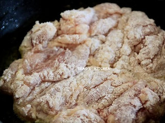 配料:太白粉2T,地瓜粉1T,米酒1T,盐1/4t,白胡椒粉少许