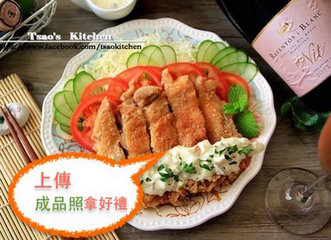 9 、上桌前将鸡腿切块摆盘,并淋上花生塔塔酱即可。是不是很简单,快来试试! 按下下方的“我也做了”上传成品照吧!! 完成料理后,也可以搭配气泡酒,让酒杯中活泼跳耀着生气盎然,更让用餐增添美丽的浪漫氛围!