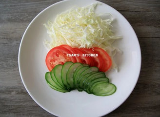 高丽菜丝适量,蕃茄切片适量,小黄瓜切片适量