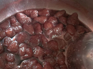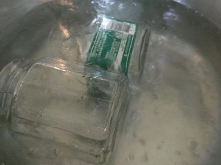 4 、以冷水开始煮果酱罐,煮滚后放入干电锅内烤干水份备用。