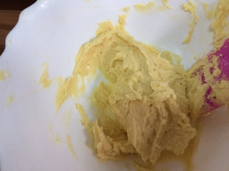 1、奶油(软化)+糖粉(过塞)搅拌均匀,搅拌成淡黄色..羽毛状。