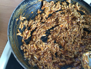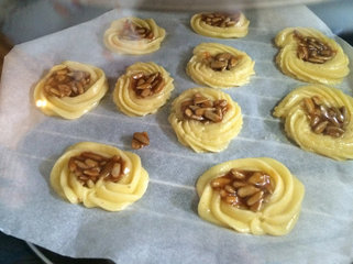 配料:糖50克,动物性鲜奶油40克,葵瓜子或杏仁角40克