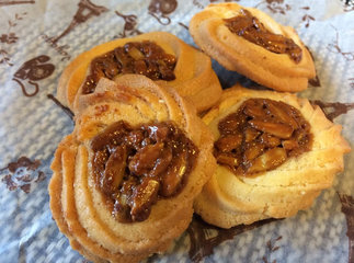 葵瓜子可以改成杏仁角,或是不要中间是焦糖,也可以改成果酱...原味饼干,也可改成巧克力口味都可以...饼干要烤干..才不会因为放入焦糖而返潮。