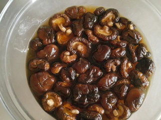 浸泡香菇到点酱油一起泡让香菇更有味喔。