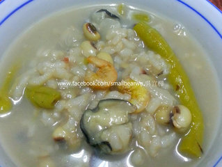 鲜蚵菜豆粥,近日蚵仔肥美,不管怎么料理都很诱人,连日大雨,蚵的鲜美,洋葱高汤的甜,软嫩的菜豆。熬成一锅粥,鲜美爽口,营养丰富,暖暖的很幸福。