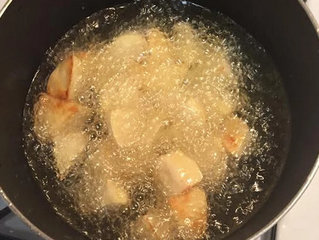2、炸地瓜开始时火侯要大,外面才会形成脆皮。