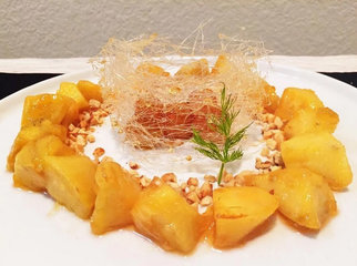 拔丝地瓜,酥脆爽口,甜而不腻,是一道非常可口的菜肴。而且营养丰富,有提高免疫力、通便减肥、抗衰老、抗癌的功效。然而这次作的是拔丝地瓜, 刚炸好的地瓜或者浅色焦糖液, 真的是让人暂时忘记烦恼啊!
