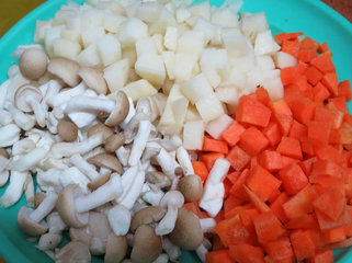 主料:红萝卜适量,马铃薯适量,鸿喜菇适量